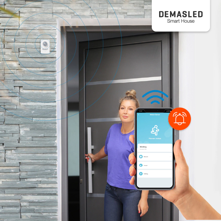 Sistema de alarma: Cada vez que el sensor detecte a una persona o animal en el rango de detección (8 metros con un ángulo de detección de 128°) le enviará una alarma a su dispositivo móvil para mantenerlo seguro y alerta.
